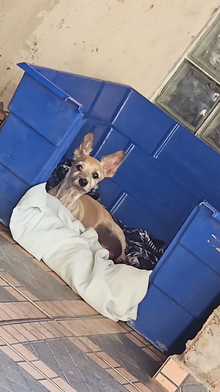 No dia 20/04/24, recebemos o pedido de ajuda para resgate e tratamento dessa cachorrinha que está com um tumor gigante. Ela foi covardemente abandonada em uma rua, onde a pessoa que viu a situação, não conseguiu ficar indiferente ao sofrimento que ela estava passando, pois de tão grande, o tumor arrasta no chão, colocou ela para dentro de casa, mesmo sem ter espaço.